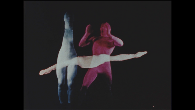 The final form of Introspection, which premiered as a part of SFMOMA’s Art in Cinema series on May 2nd, 1947, is notable as it is likely the first abstracted dance films ever created. A visual artist by training, Arledge began work on the film as a means of “adding time to painting” in 1941 and explored every facet of her Kodak Cine Special to do so, placing colored gels over her lenses, using matte inserts to double or triple expose parts of the frame and using a car’s reflective hubcap